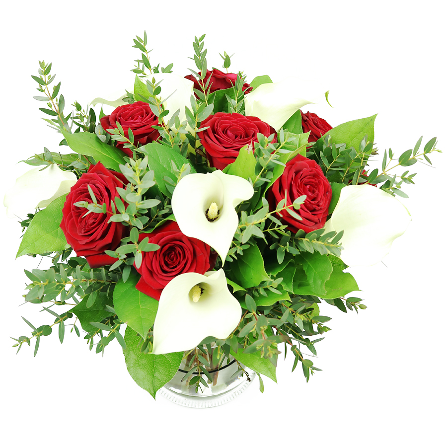 This magical abundance of roses, calla and greenery will bring a smile on everyone's face. If the words can`t be enough to show your love, this dazzling bouquet for sure will say more.